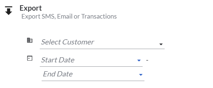 - It is recommended to define the date range of the email notifications that you want to export. To export for all customers, leave 'Select Customer' as unselected.