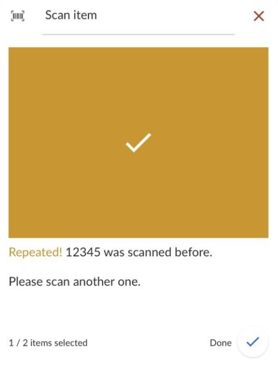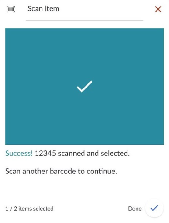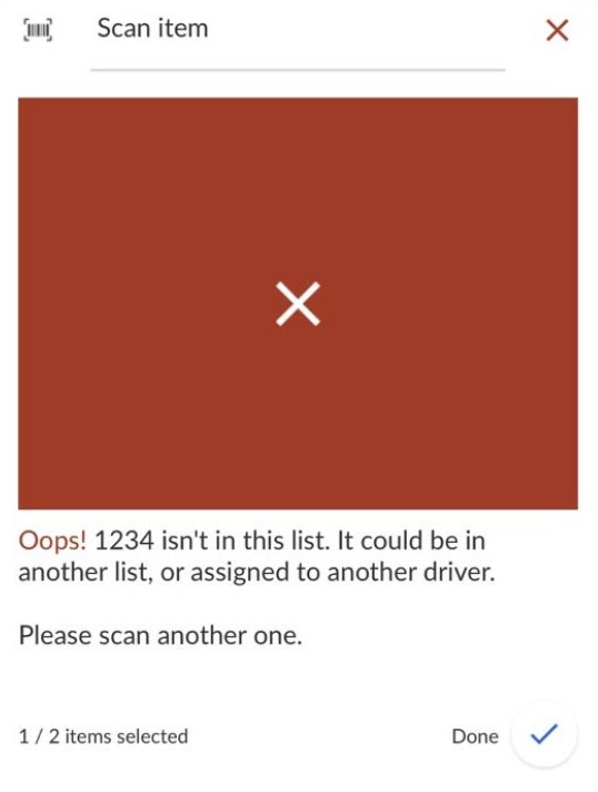 - For successful scans where the item scanned is in the driver's list, a green tick will be shown.