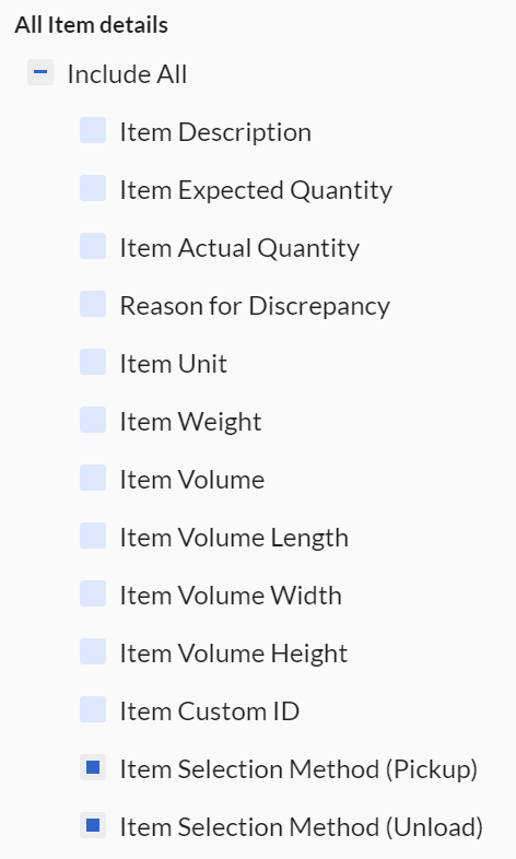 - Check the box for Item Selection Method (Pickup) and the box for Item Selection Method (Unload)