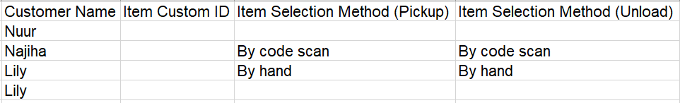 To find out if the drivers have scanned or selected the items by hand during collection and unloading, you can export the details.
