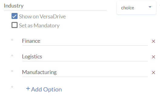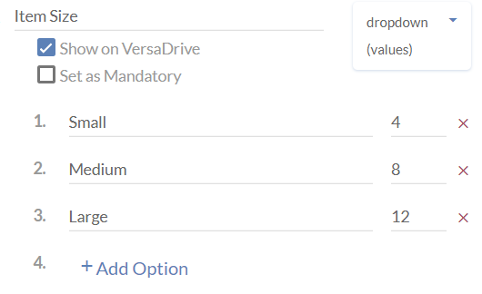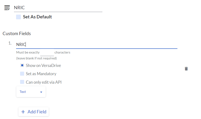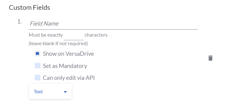 - You may also set this field to be shown on VersaDrive or as a mandatory field- Add the Custom Field and its details.