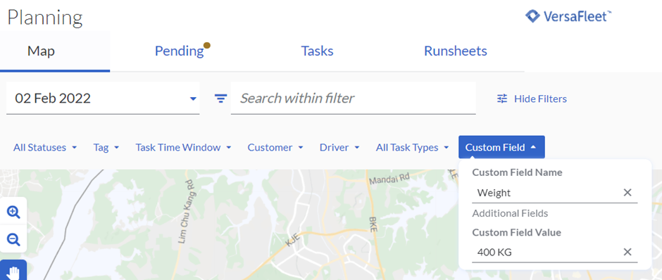 Custom Fields is an Add-On module that allows you to configure additional fields for your tasks. Contact us at customers@versafleet.co to activate this.