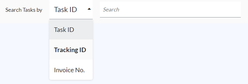- Choose the identifier that you'd like to use to search tasks - Task ID, Tracking ID or Invoice No.