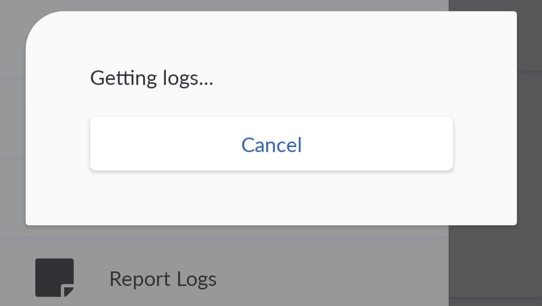 - If it's taking a long time to get the logs, you may click Cancel to stop the process. We recommend that you quit the app, relaunch and try reporting logs again.