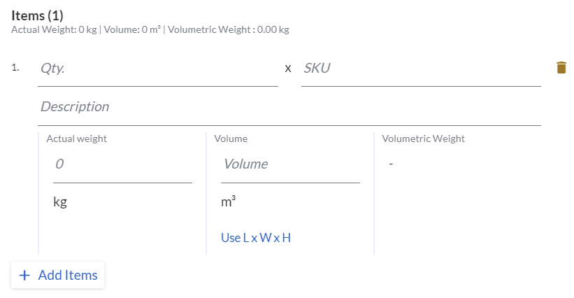 - Key in Qty, Item and Description, as well as the dimensions.