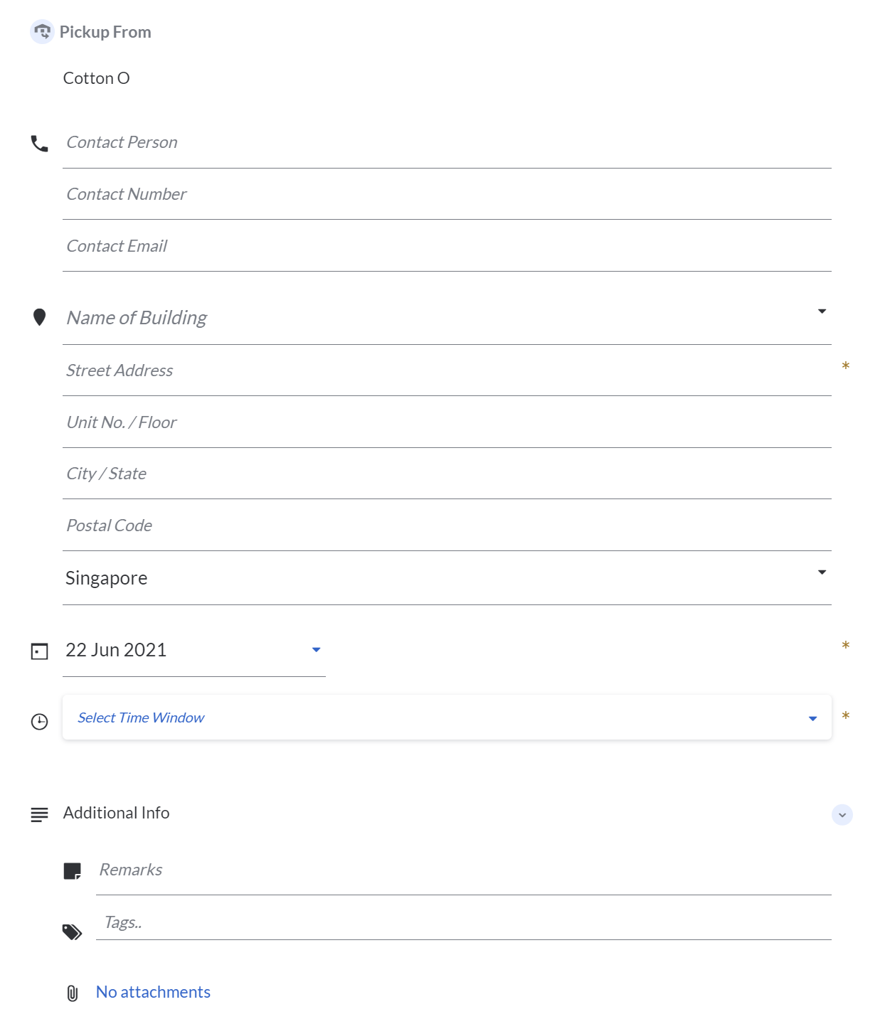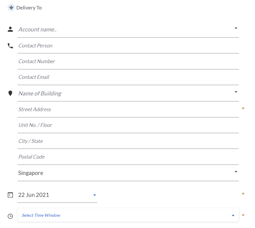 Deliver to / Pickup from – this will be the information for the Task.The compulsory fields are: