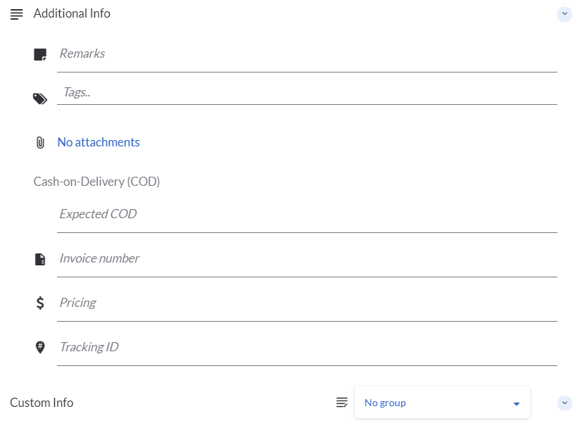 - Tracking ID: This is useful if you would like to customise your own Tracking ID for your customers to track this task on their own. Each Tracking ID should at least be 12 alphanumeric characters. Spaces and all special characters (with the exception of ( ) - { }) are not allowed.