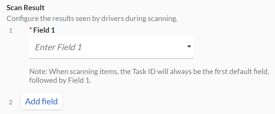 Note: When scanning items, the Task ID will always be the first default field, followed by Field 1.